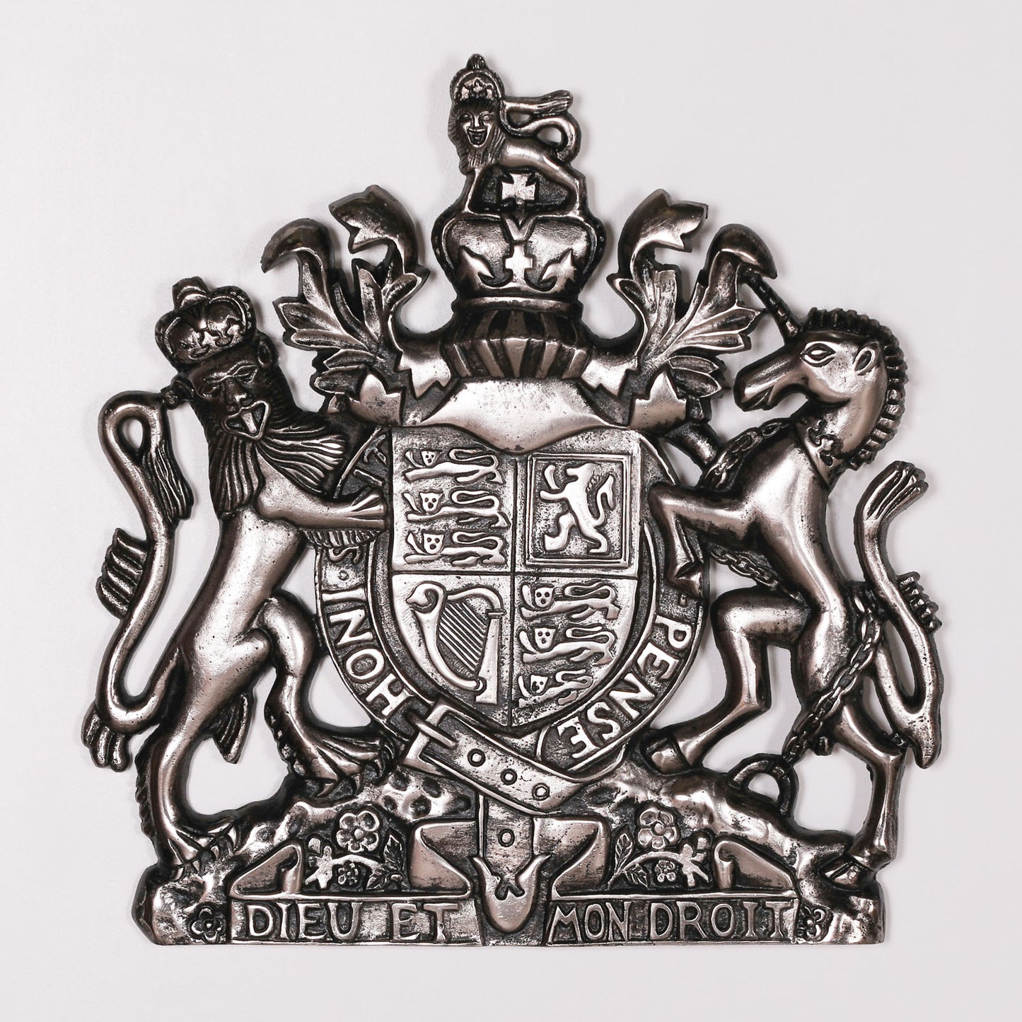 Coat of Arms 37cm plaque handcrafted from cast aluminium in a vintage silver finish.